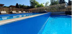 Ανακατασκευή πισίνας με υπερχείλιση infinity. Επένδυση με μεμβράνη χρώματος μπλε.
