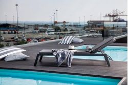 Ξενοδοχείο Porto Palace Θεσσαλονίκη, μεταλλικές πισίνες στο roof garden και μεταλλικά υδρομασάζ και sauna στον χώρο του spa.